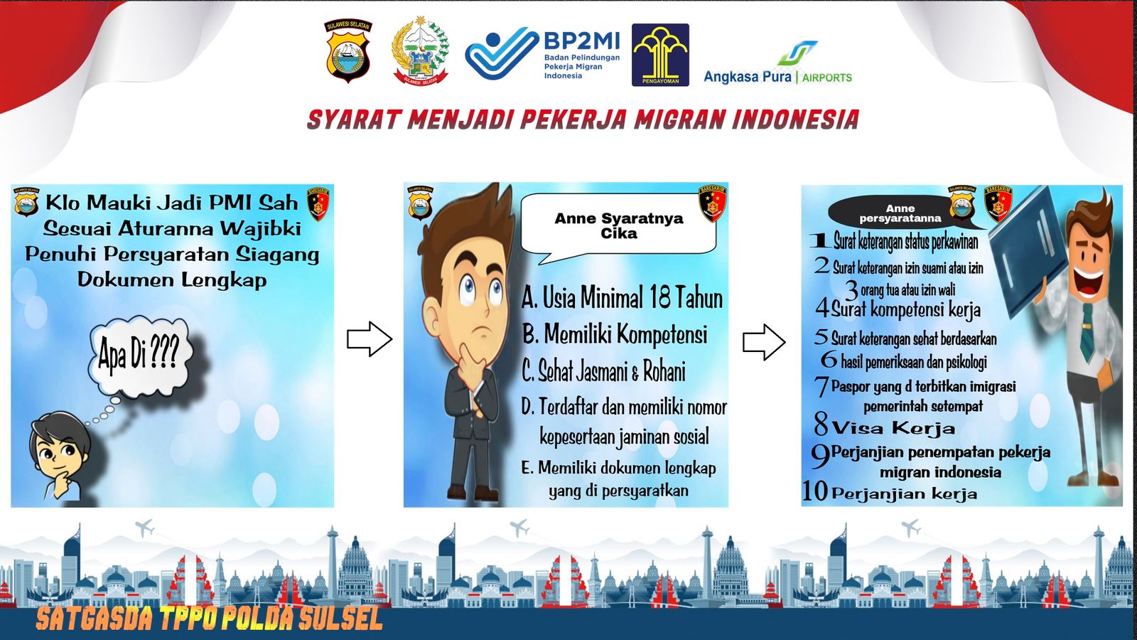 Ia juga menyampaikan bahwa Satgas TPPO Polda Sulsel, telah menyebarkan informasi terkait Aturan dan syarat Pekerja Migran Indonesia.