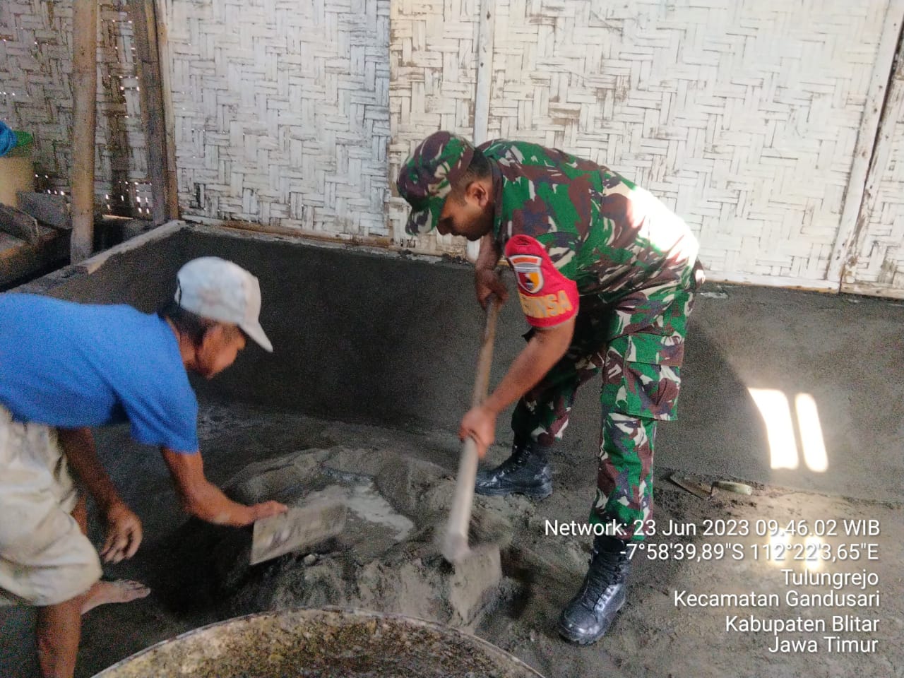Blitar, Lintas5terkini.com – Dengan penuh semangat, Babinsa Koramil 0808/15 Gandusari Kodim 0808/Blitar Serda Alfian Zakaria bersama warga masyarakat melaksanakan kegiatan kerja bakti membantu memperbaiki rumah milik Bapak Ponidi, bertempat di Dusun Celeng Desa Tulungrejo Kec. Gandusari Kab. Blitar, Jumat (23/6/2023).