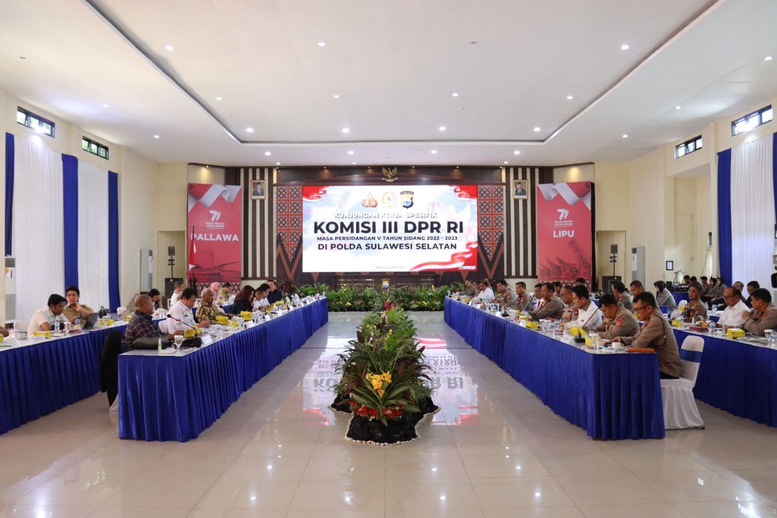 Kunjungan kerja tersebut dipimpin oleh Ketua Tim Wakil Ketua Komisi III DPR RI, Dr. Habiburokhman, SH, MH, dan dihadiri langsung oleh Kapolda Sulsel Irjen. Pol. Drs. Setyo Boedi Moempoeni Harso, S.H.,M.Hum, Wakapolda Sulsel Brigjen. Pol. Chuzaini Patoppoi, S.St.M.K., S.H, Kapolres jajaran, PJU Polda Sulsel dan sejumlah anggota Komisi III DPR RI.