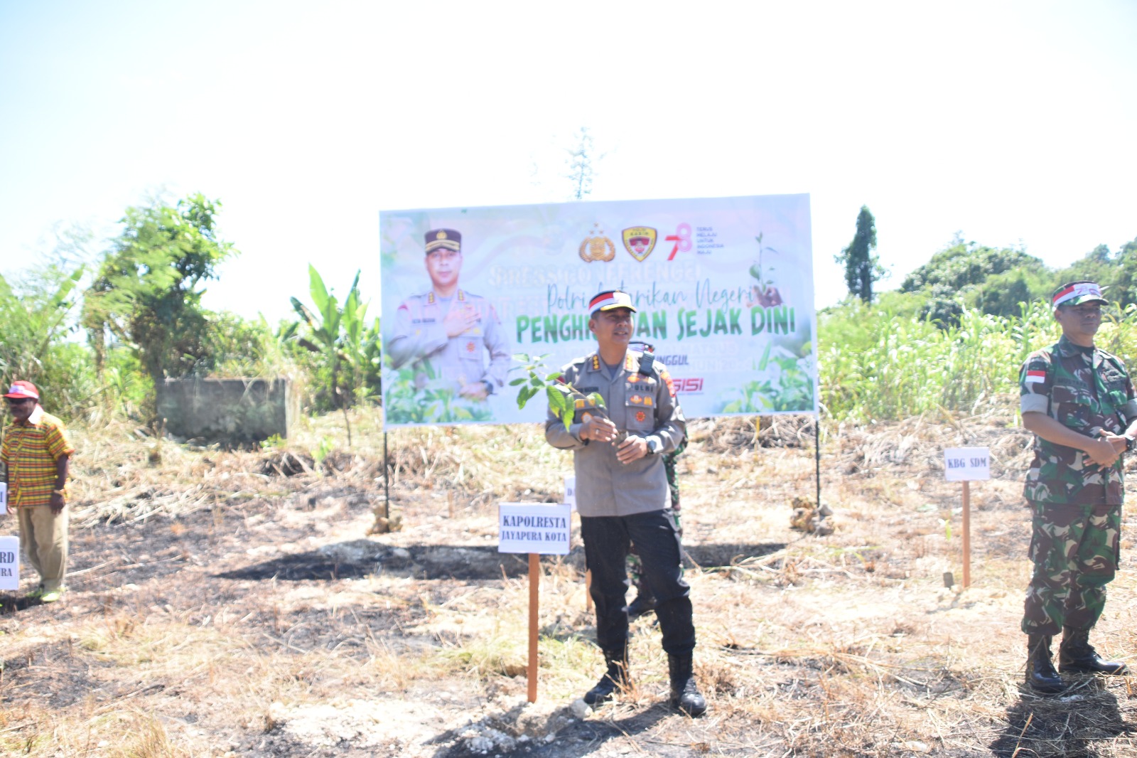 Lintas5terkini.com – Polresta Jayapura Kota, | Masih dalam rangkaian peringatan HUT RI Ke-78 Tahun 2023, Kapolresta Jayapura Kota Kombes Pol. Dr. Victor D. Mackbon, S.H., S.IK., M.H., M.Si pimpin pelaksanaan Penanaman Pohon Polri secara serentak bertempat di samping Pos Polisi Kilo 9 Koya Kosso Distrik Abepura, Rabu (23/8) pagi.