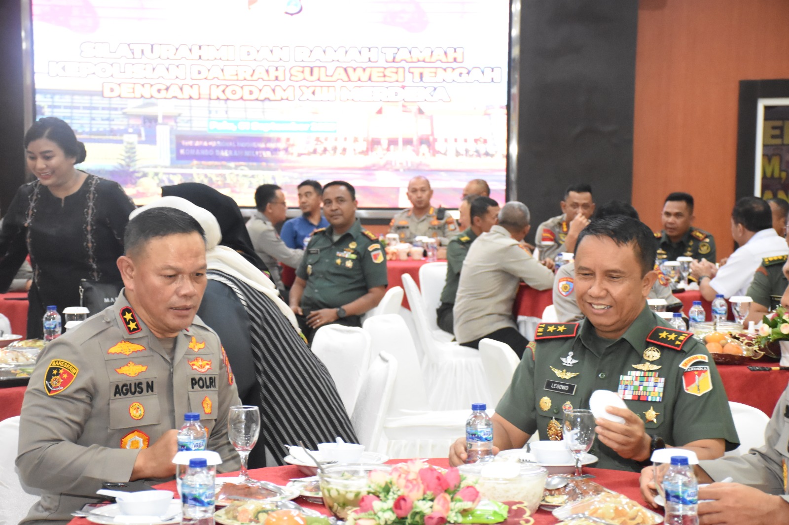 Pertemuan Petinggi TNI yang membawahi wilayah Sulut, Sulteng dan Gorontalo diterima dan dijamu Kapolda Sulteng di Rupatama lantai II Polda Sulteng.