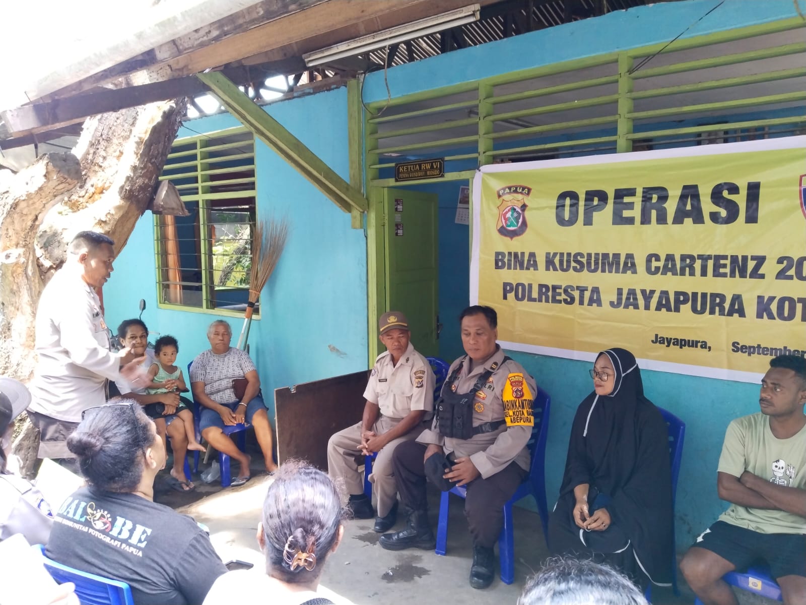 Lintas5terkini.com – Polresta Jayapura Kota, | Operasi Bina Kusuma Polresta Jayapura Kota melakukan diskusi dengan memberikan pesan dan himbauan kamtibmas kepada warga Kloofkamp, Jumat (08/09) Pagi.