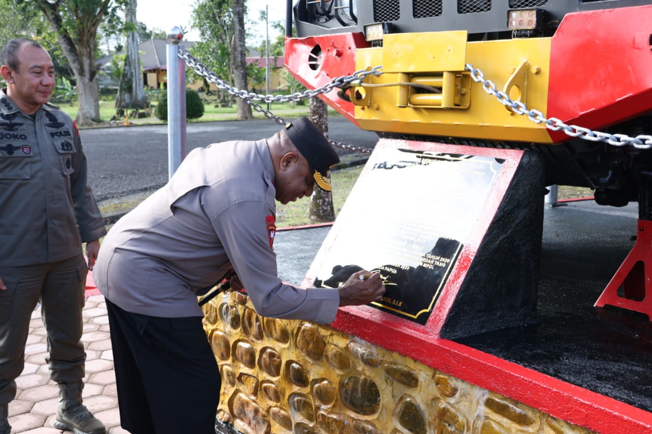 Didampingi beberapa perwira, Kapolda P.apua secara resmi menandatangani Prasasti Rantis Brimob DAPC-1 Wolf pada Pukul 15.43 WIT