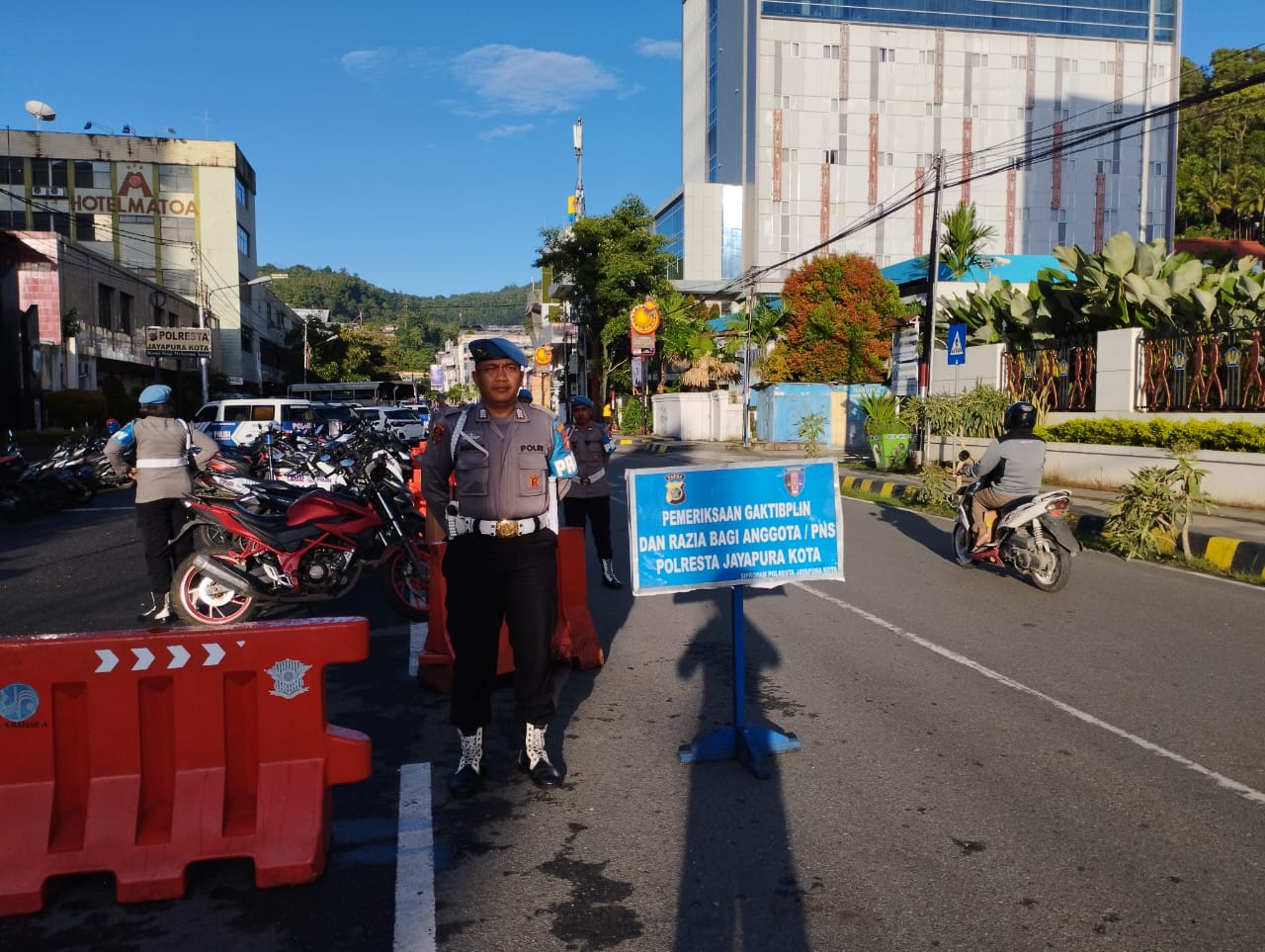 Lintas5terkini.com Polresta Jayapura Kota, | Sebanyak 16 Personel Polri yang berdinas di Polresta Jayapura Kota terjaring saat dilaksanakannya Gaktiblin di depan Mapolresta oleh Seksi Propam, Senin (18/9).