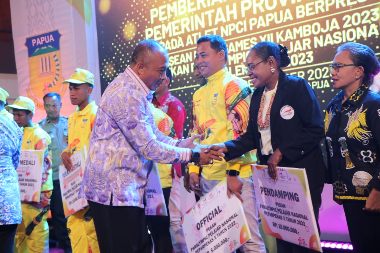 Dalam kesempatan yang sama, Wakapolda Papua, Brigjen Pol Ramdani Hidayat, secara simbolis memberikan bonus kepada para atlet NPCI Provinsi Papua yang berprestasi, yang mencapai total sekitar 2 miliar Rupiah dari dana hibah Pemprov Papua Tahun 2023. Dalam sambutannya, Brigjen Pol Ramdani Hidayat mengungkapkan apresiasi dan dukungan penuh dari kepolisian terhadap atlet-atlet berprestasi.