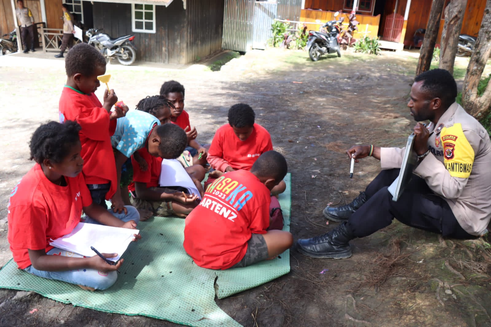 Sehingga Polri khususnya Satgas Binmas Ops Damai Cartenz pada hari Senin, (19/10/2022) tergerak hatinya untuk mengajarkan membaca dan berhitung kepada anak-anak di Kampung Kago Kabupaten Puncak.