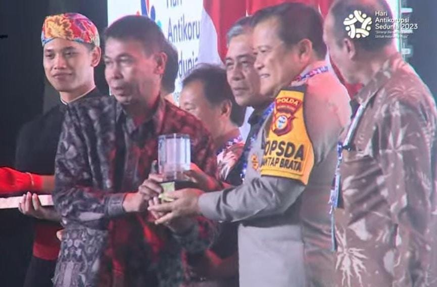 Penghargaan tersebut diterima langsung Kapolda Sulsel Irjen Pol Drs. Setyo Boedi Moempoeni Harso, S.H., M.Hum dalam acara Hari Antikorupsi Sedunia (Harkodia) 2023 yang digelar di Ruang Utama Istora GBK Jl. Pintu Senayan Jakarta, Selasa (12/23)