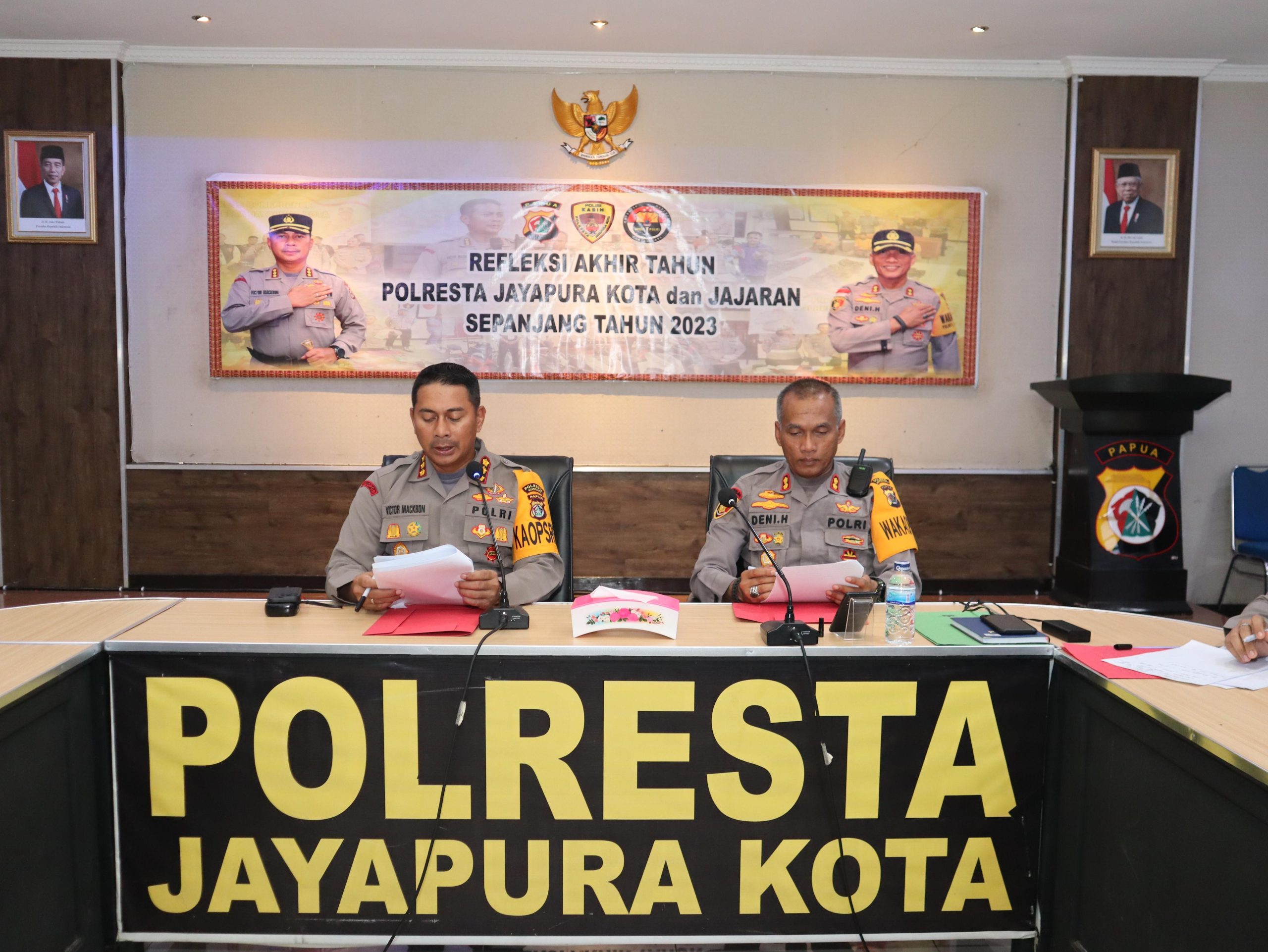 Hal itu diungkapkanya dengan didampingi Wakpolresta AKBP Deni Herdiana, S.E., S.H., M.M., M.H saat menggelar Refleksi Akhir Tahun 2023 kepada awak media bertempat di Aula Mapolresta Jayapura Kota, Jumat (22/12) siang.