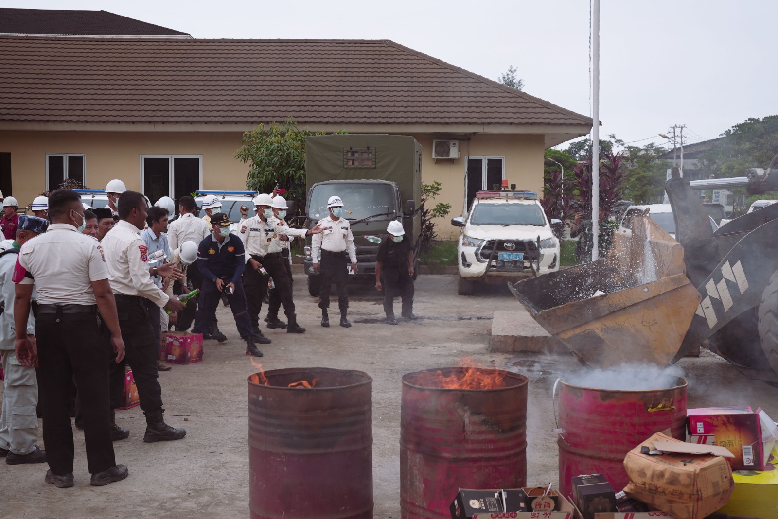 Barang yang dimusnahkan itu diantaranya 2.479 botol miras ilegal berbagai merek dan 108 bungkus rokok ilegal. Pemusnahan berlangsung pada Kamis (11/1/2024) sekitar pukul 16.00 WITA di halaman Kantor Morowali Security Service (MSS) sebagai pihak keamanan Kawasan Industri IMIP.