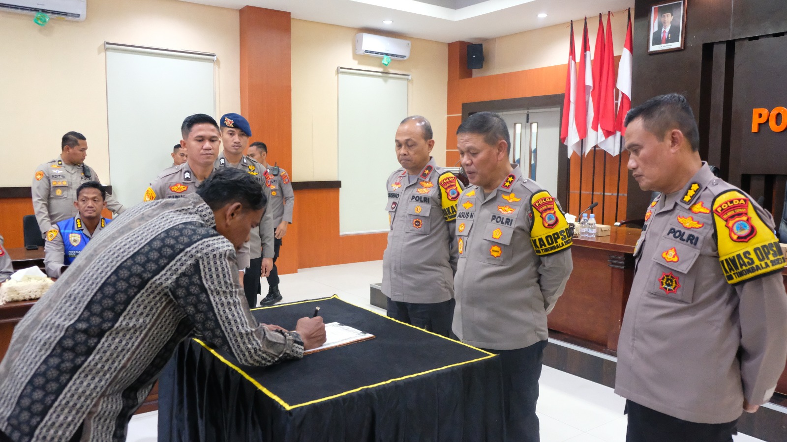 Acara digelar di Rupatama Polda Sulteng dipimpin oleh Kapolda Sulteng Irjen Pol. Agus Nugroho,turut dihadiri Wakapolda Brigjen Pol. Soeseno Noerhandoko, Irwasda dan beberapa pejabat utama Polda Sulteng, Rabu (17/1/2024).