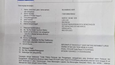 1.  Tersangka Arter Langkay dari Kejaksaan Negeri Minahasa, yang disangka melanggar Pasal 44 Ayat (1) Undang-Undang RI Nomor 23 Tahun 2004 tentang Penghapusan Kekerasan Dalam Rumah Tangga.