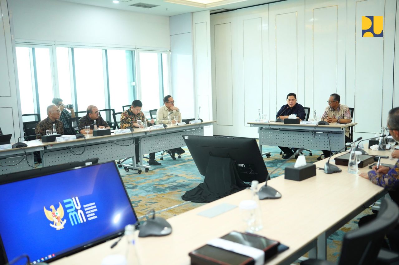 Jakarta, Lintas5terkini.com – Menteri Pekerjaan Umum (PU) Dody Hanggodo didampingi Wakil Menteri PU Diana Kusumastuti melakukan pertemuan dengan Menteri Badan Usaha Milik Negara (BUMN) Erick Thohir dan Wakil Menteri BUMN Kartika Wirjoatmodjo di Kantor Kementerian BUMN, Jumat (15/11/2024). Pertemuan ini mendiskusikan mengenai rencana restrukturisasi BUMN Karya untuk mewujudkan program Asta Cita, utamanya dukungan infrastruktur untuk swasembada pangan dan hilirisasi.