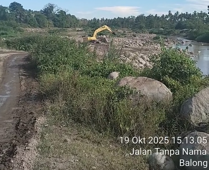 Kegiatan yang diduga ilegal dilakukan oleh kelompok penambang diduga tanpa izin ini menyebabkan perubahan aliran sungai, kerusakan bantaran serta mengancam lahan pertanian warga di sekitarnya.