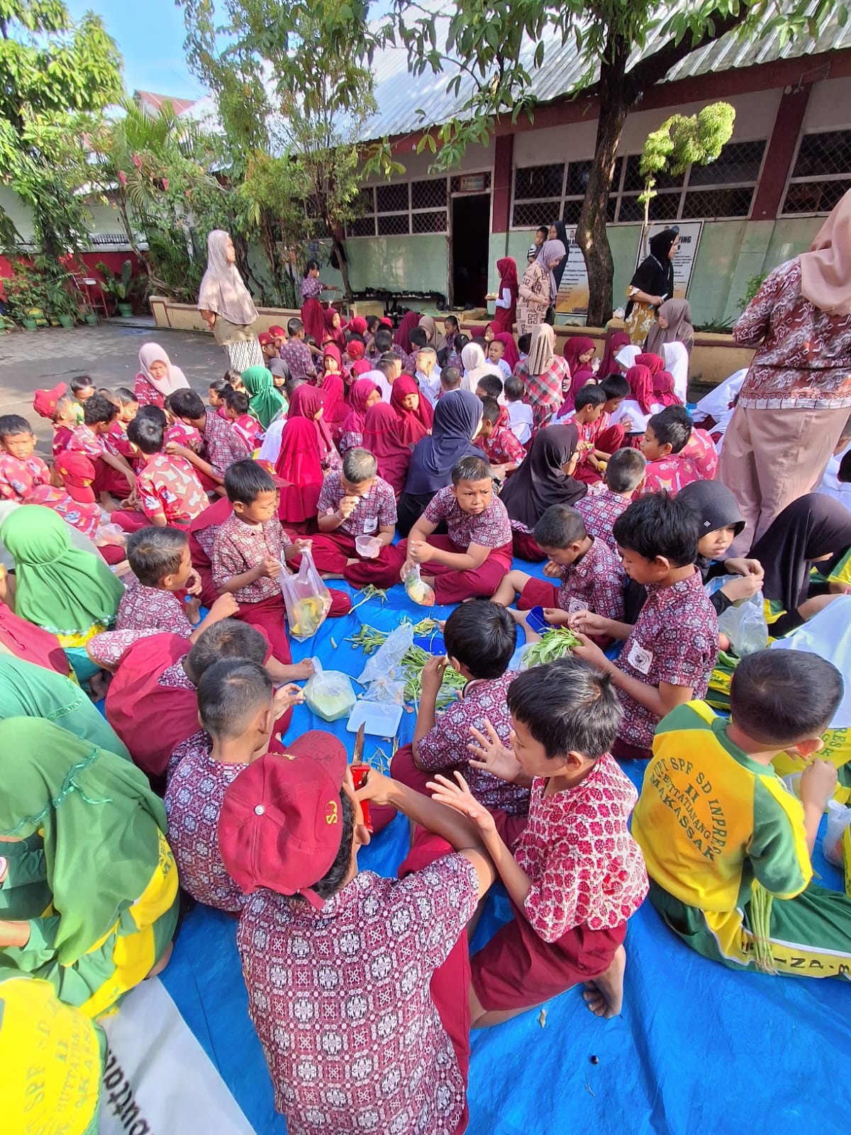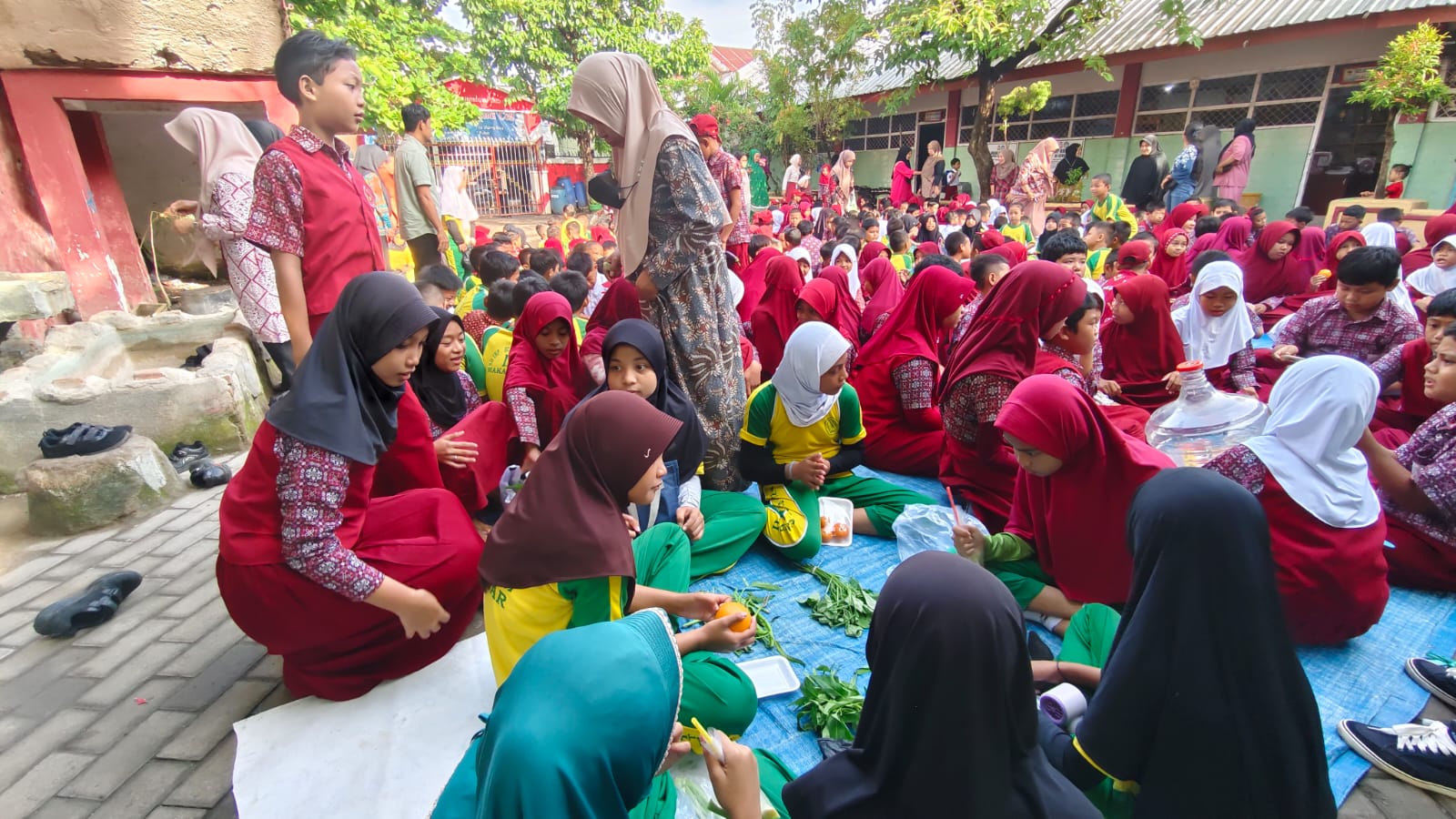 Kegiatan berlangsung dengan antusias. Para siswa membawa bahan-bahan organik seperti kulit buah, gula merah, dan air, kemudian dibimbing guru dalam proses pencampuran hingga penyimpanan eco enzyme. Orang tua yang hadir juga turut memberikan dukungan.