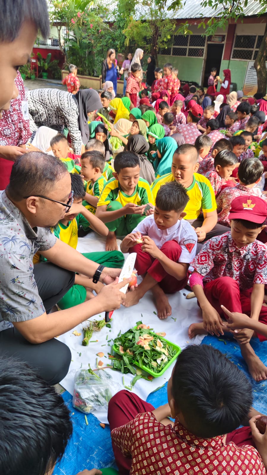 Kegiatan berlangsung dengan antusias. Para siswa membawa bahan-bahan organik seperti kulit buah, gula merah, dan air, kemudian dibimbing guru dalam proses pencampuran hingga penyimpanan eco enzyme. Orang tua yang hadir juga turut memberikan dukungan.