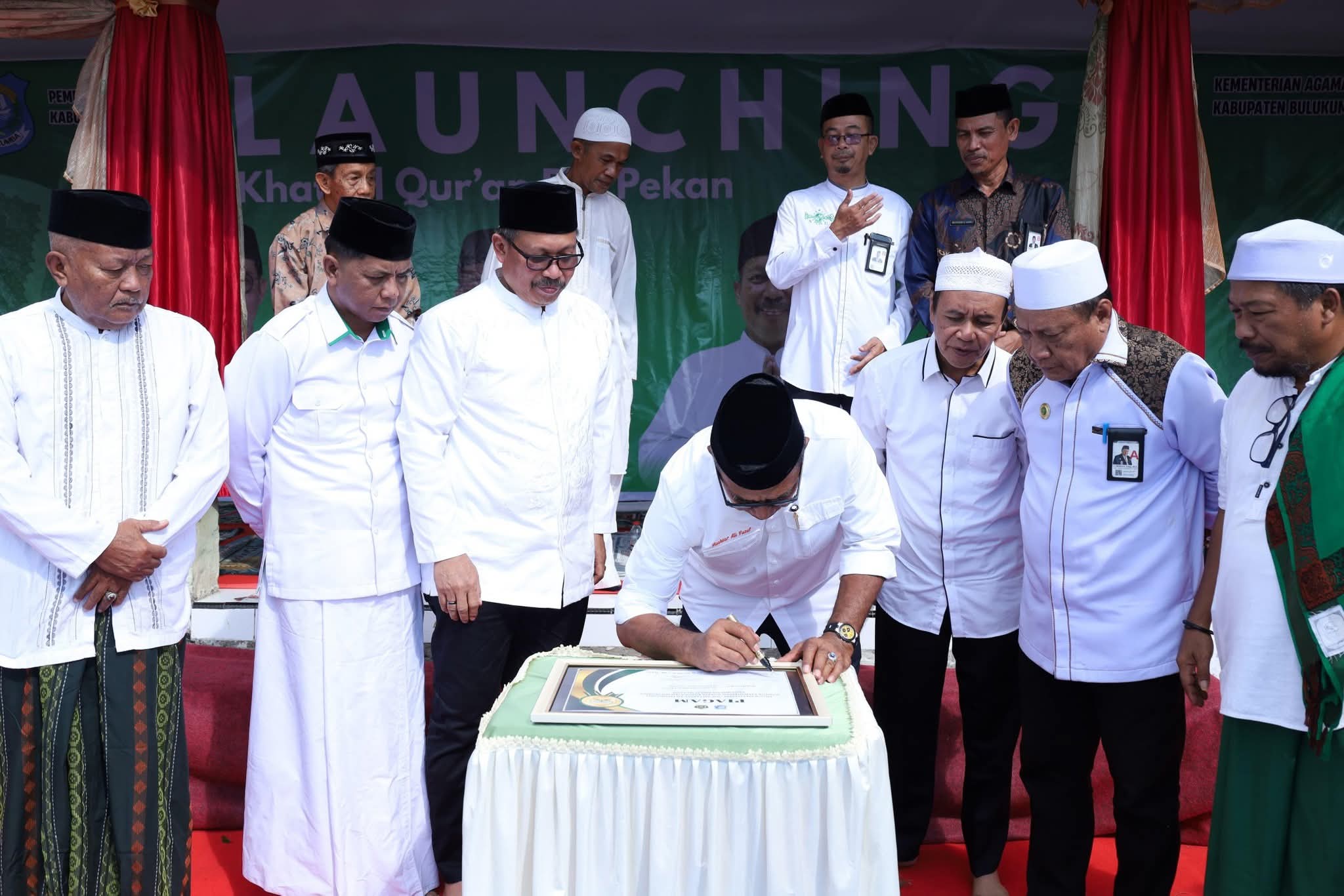 “Program Khatmil Qur’an Per Pekan ini terlihat sederhana, tetapi dampaknya sangat besar. Membiasakan membaca Al-Qur’an ini untuk membangun karakter, membentuk akhlak, dan menenangkan hati,” ujar Andi Utta sapaan akrab bupati.